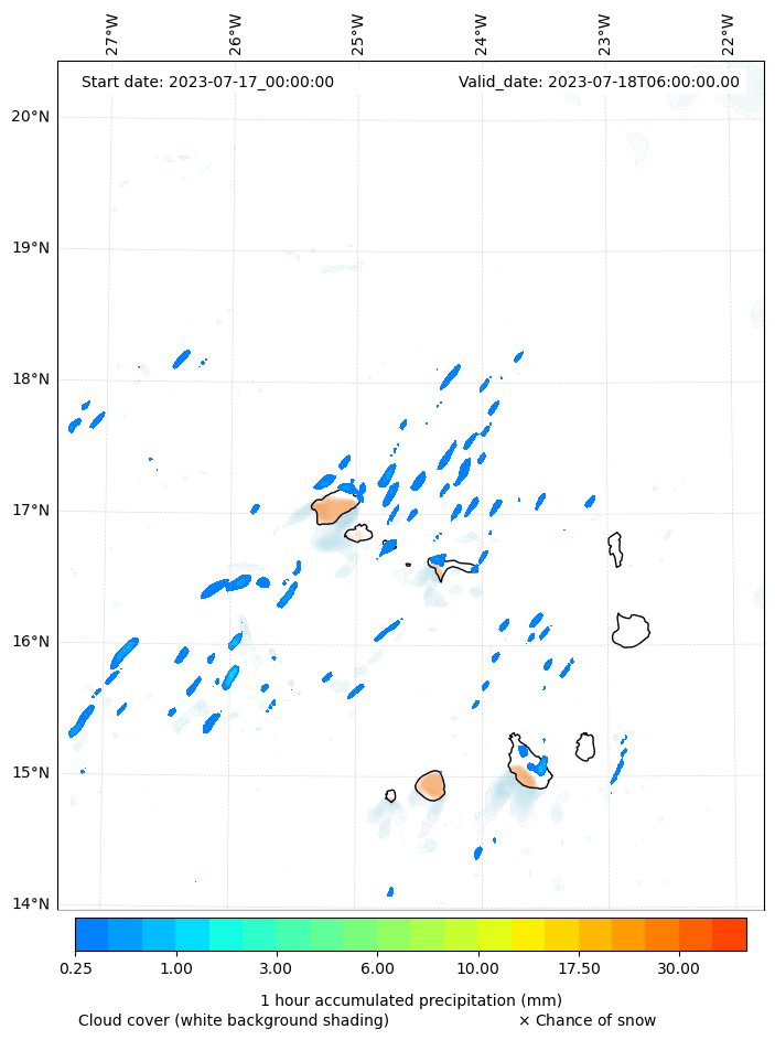 - Snow mixing ratio (g kg¯¹)