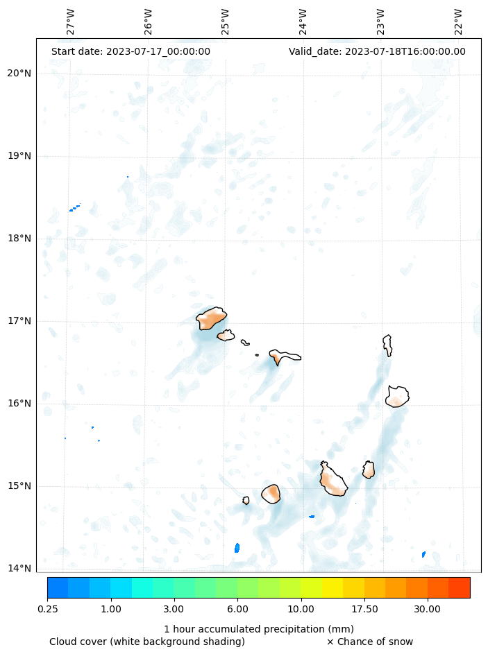 - Snow mixing ratio (g kg¯¹)