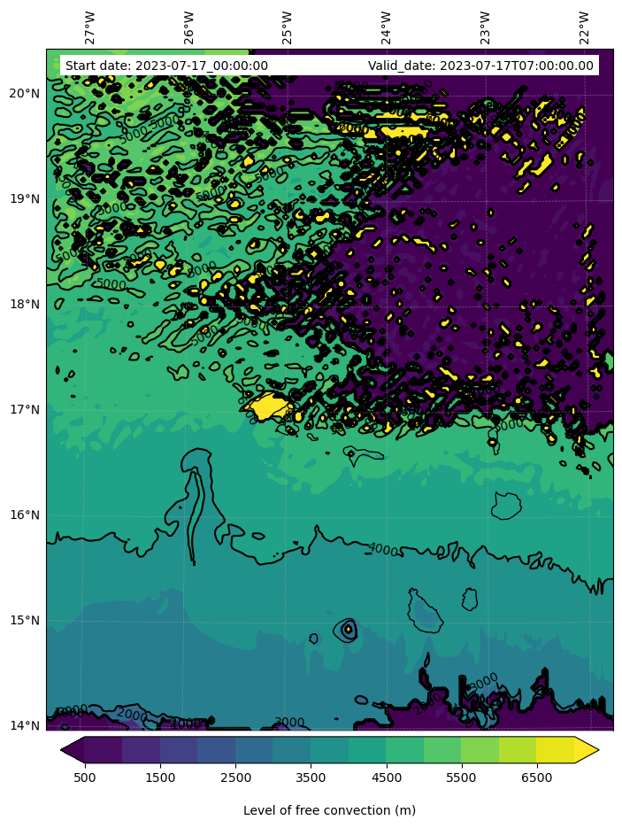 - Level of free convection (m)