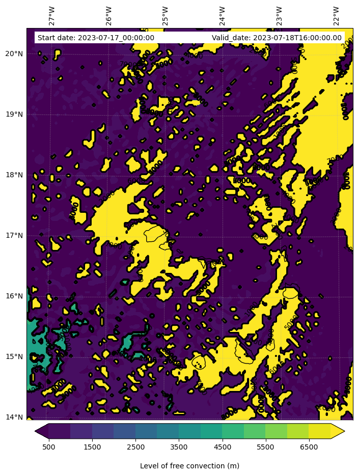 • Level of free convection (m)