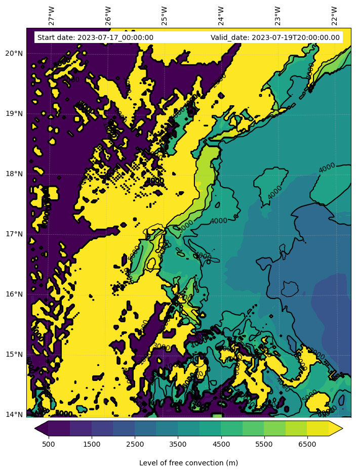 - Level of free convection (m)