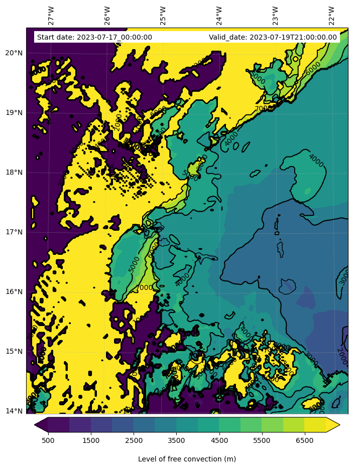 • Level of free convection (m)