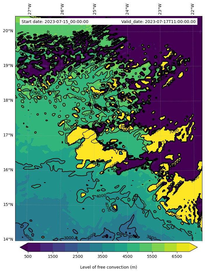 - Level of free convection (m)