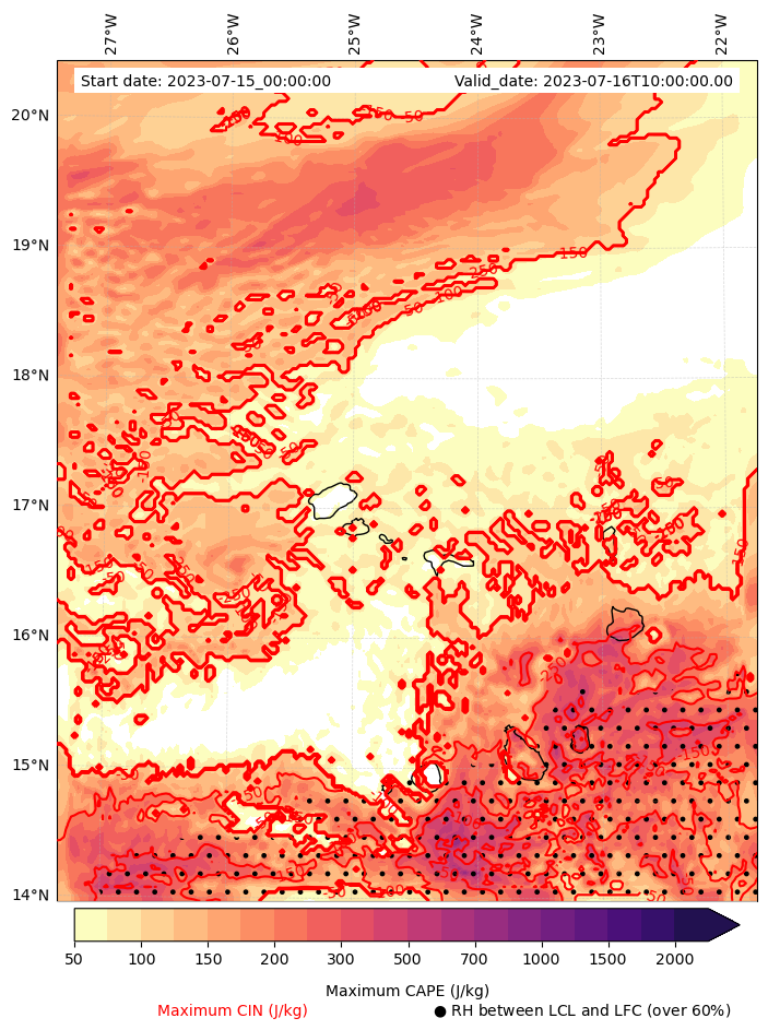 • Maximum CAPE (J/Kg)