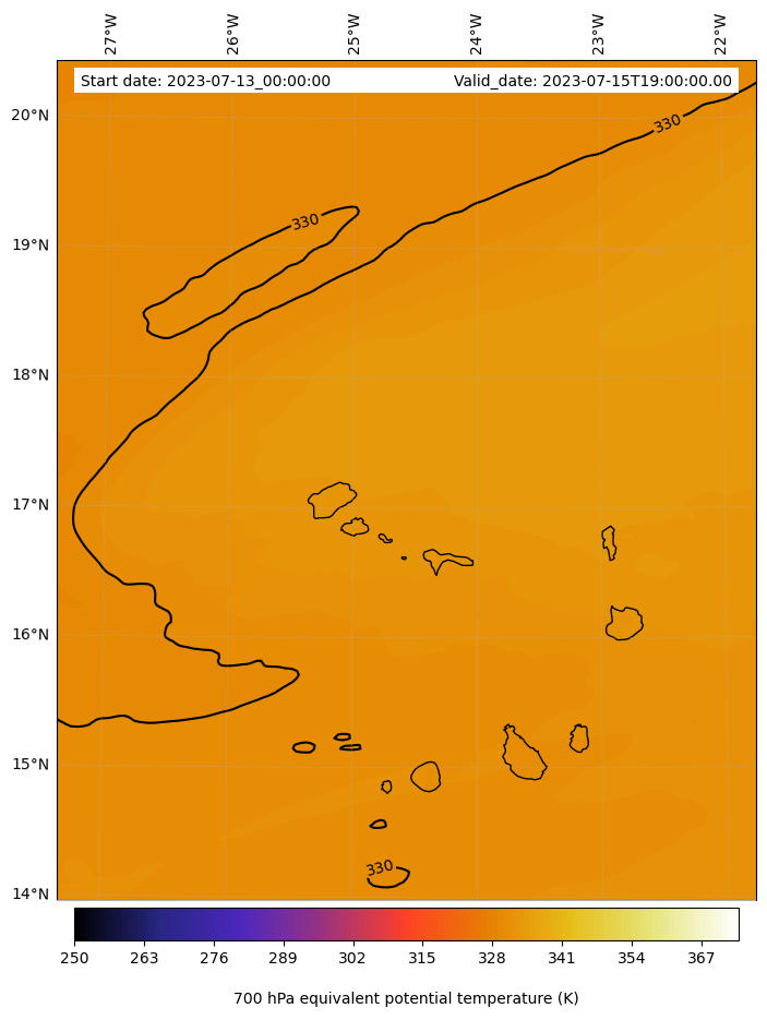 - Equivalent Potential Temperature (K)