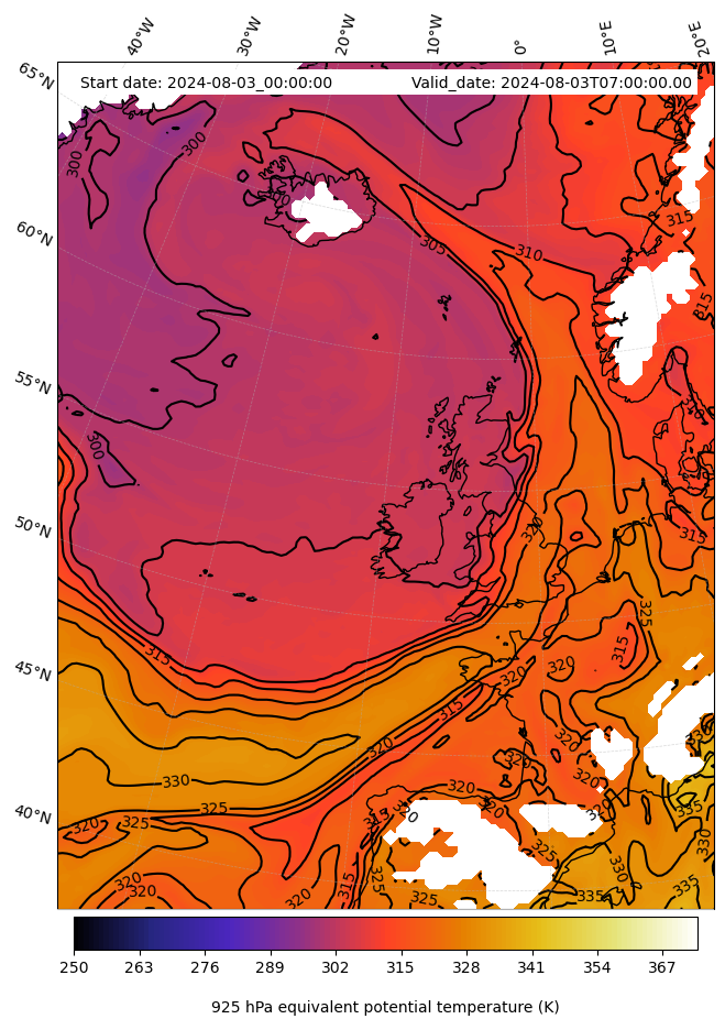 - Equivalent Potential Temperature (K)