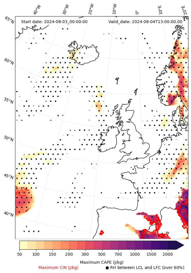 - Maximum CAPE (J/Kg)