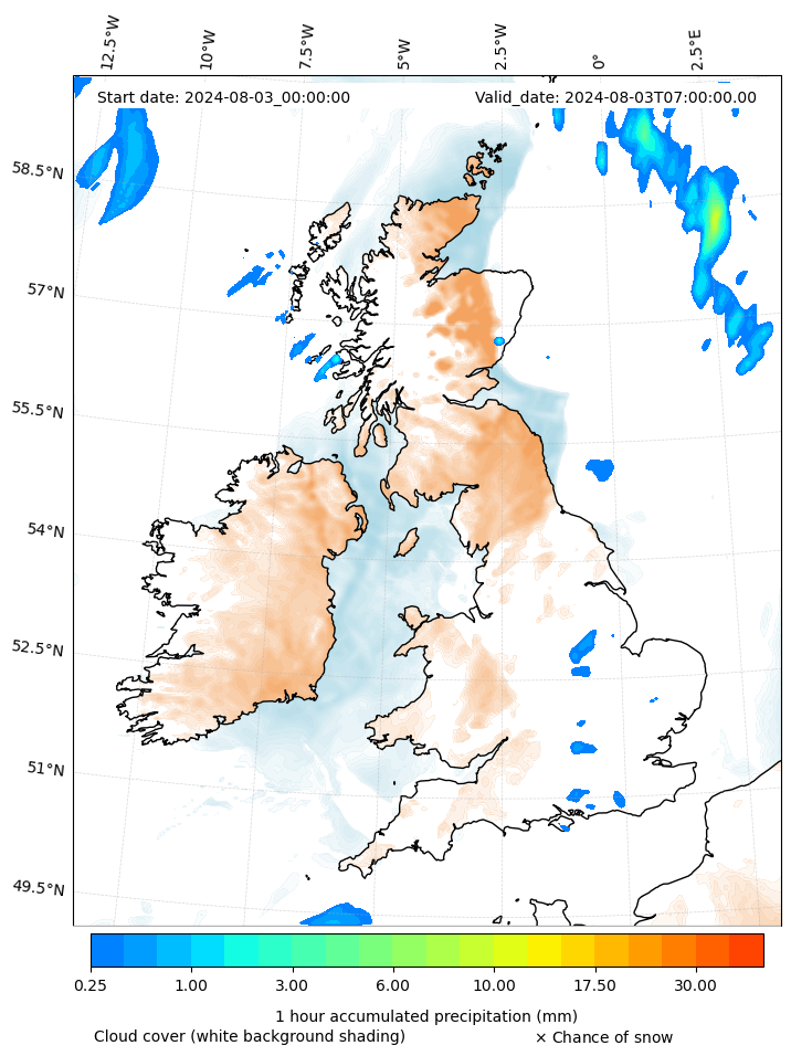 - Snow mixing ratio (g kg¯¹)