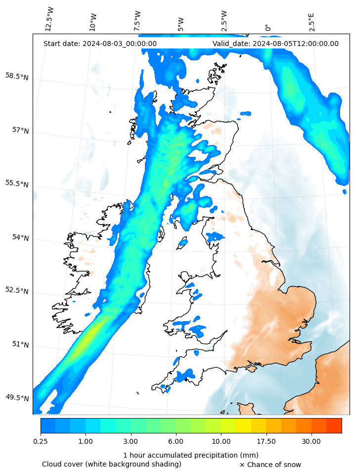 - Snow mixing ratio (g kg¯¹)