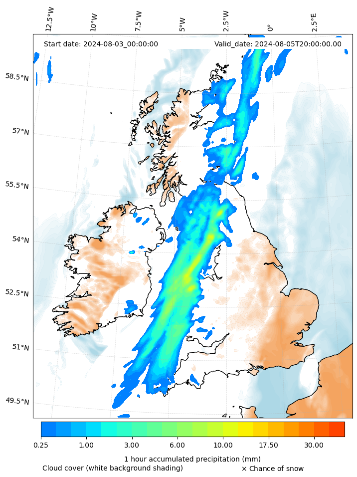 - Snow mixing ratio (g kg¯¹)