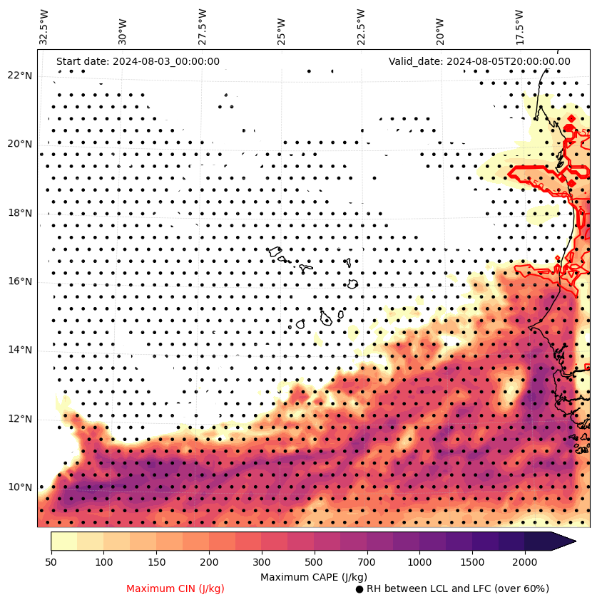 - Maximum CAPE (J/Kg)