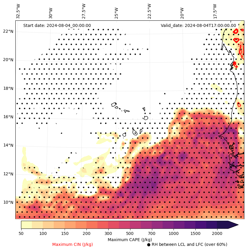 • Maximum CAPE (J/Kg)