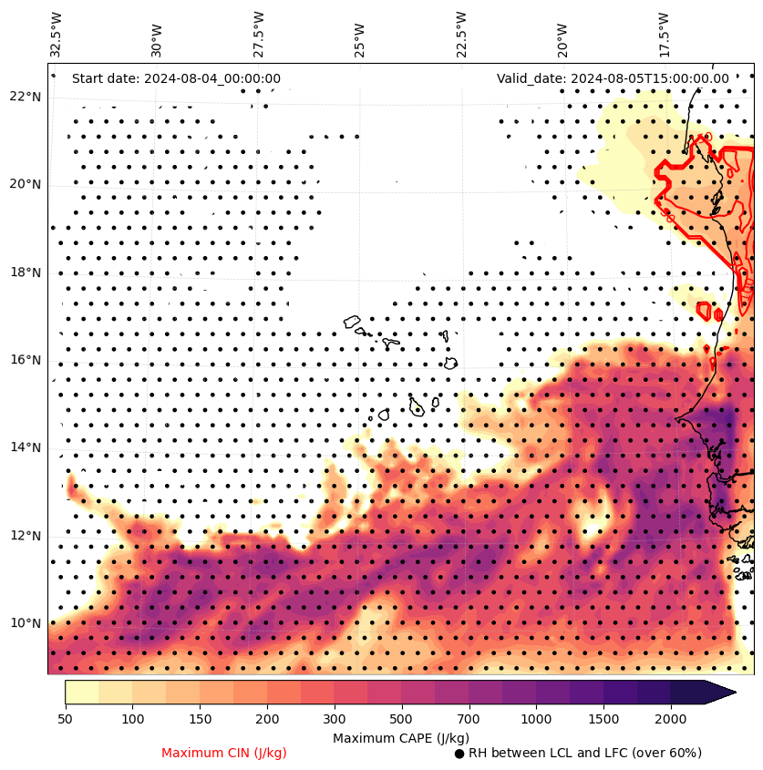 • Maximum CAPE (J/Kg)