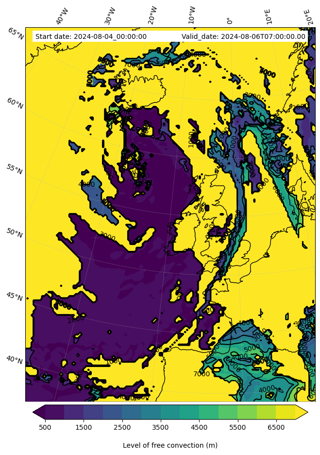 - Level of free convection (m)