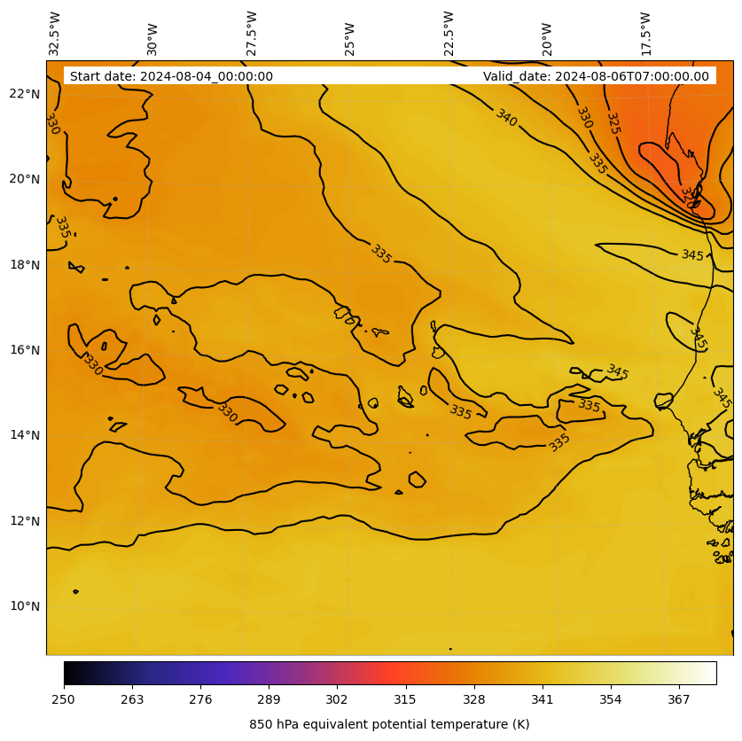 - Equivalent Potential Temperature (K)