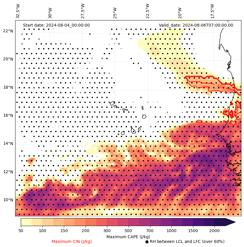 - Maximum CAPE (J/Kg)