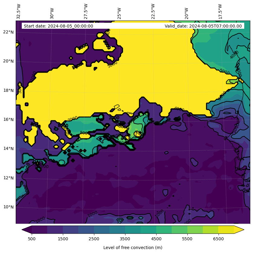 - Level of free convection (m)