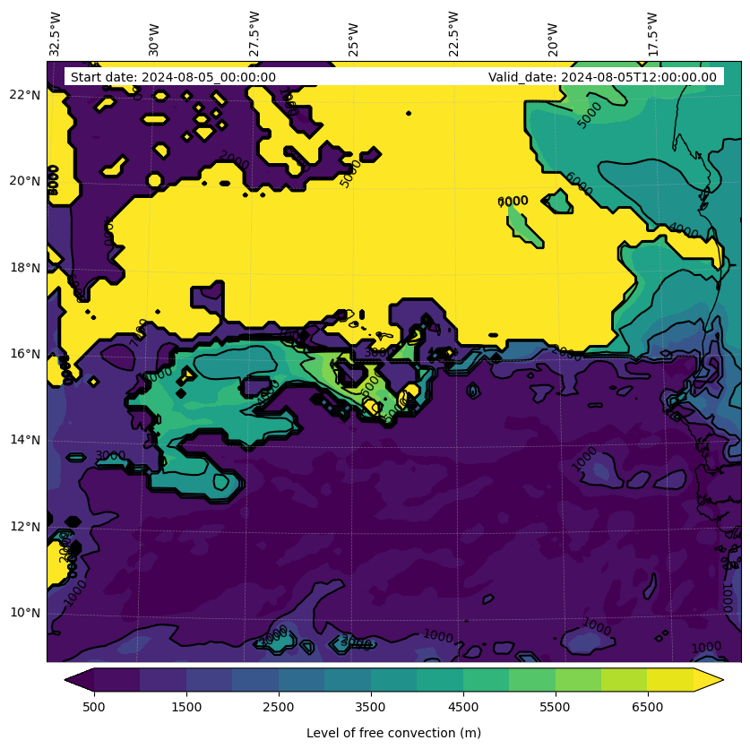 - Level of free convection (m)