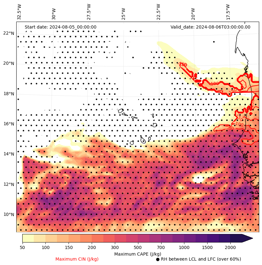 • Maximum CAPE (J/Kg)