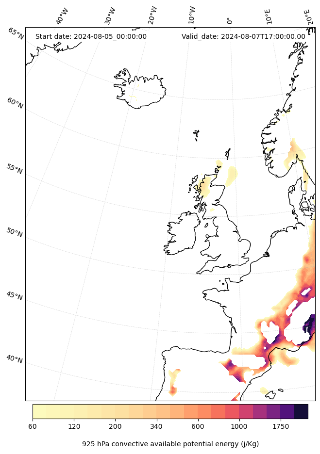 - Maximum CAPE (J/Kg)