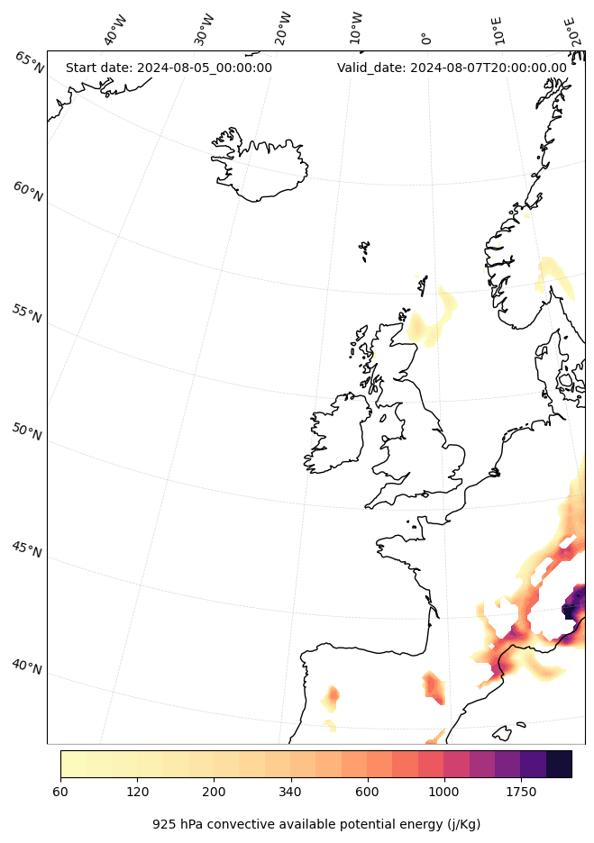 - Maximum CAPE (J/Kg)