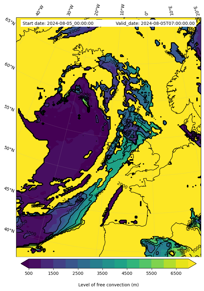- Level of free convection (m)