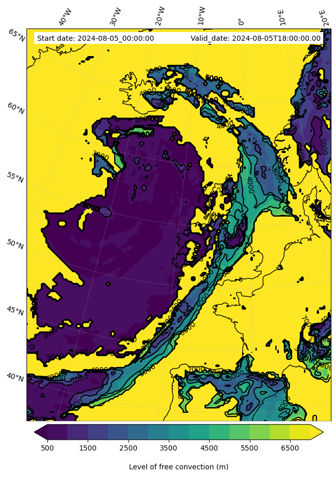 - Level of free convection (m)