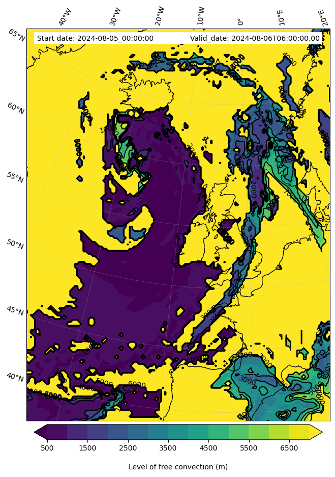 • Level of free convection (m)
