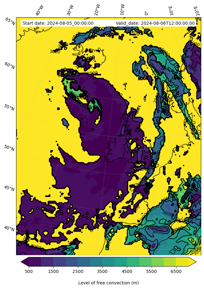 • Level of free convection (m)