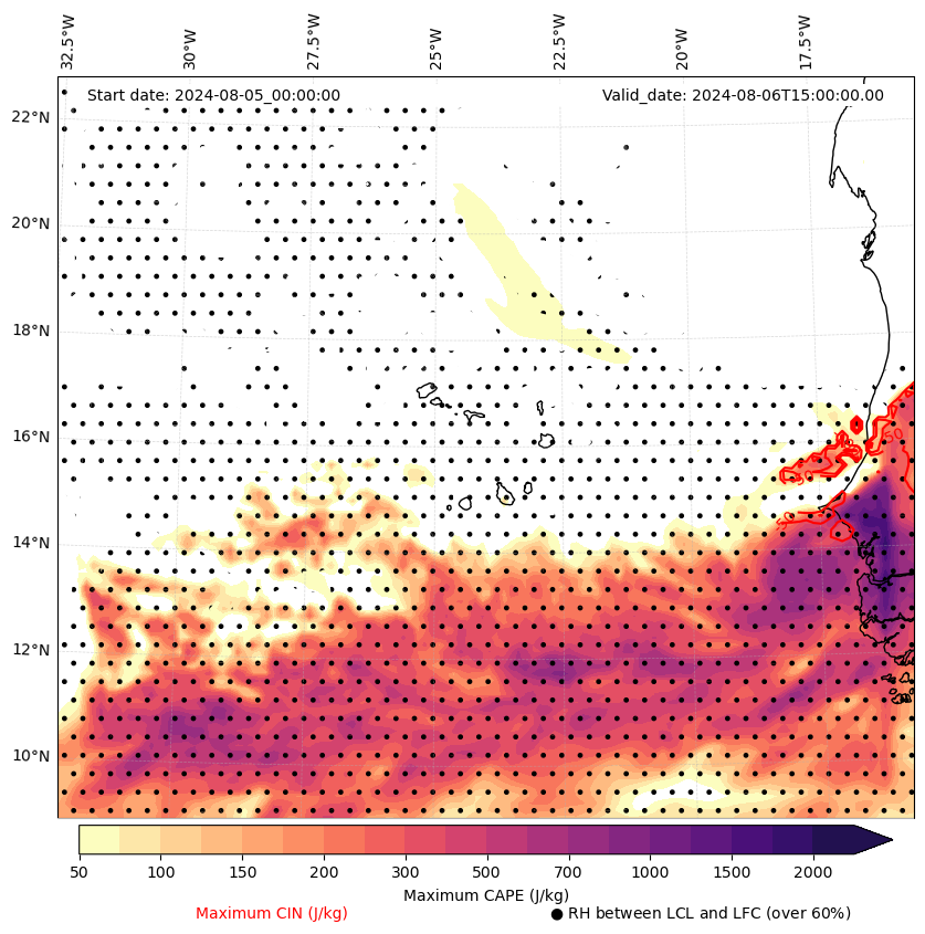 • Maximum CAPE (J/Kg)
