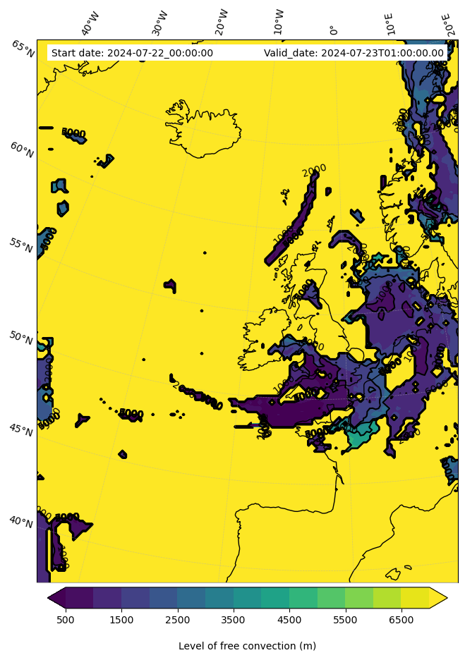 - Level of free convection (m)