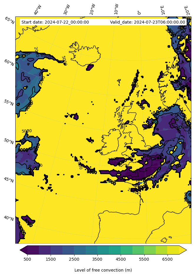 - Level of free convection (m)