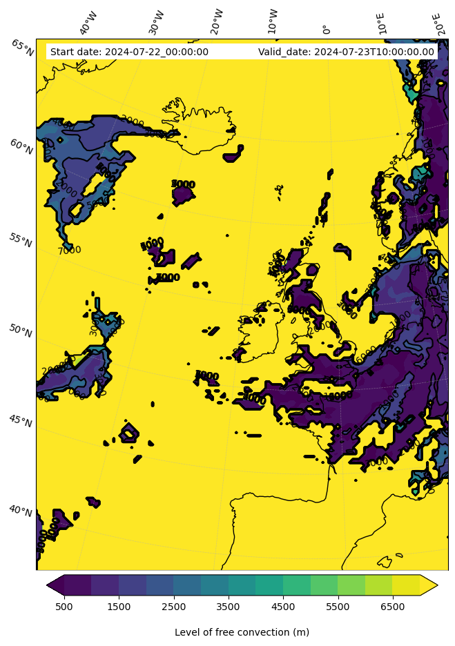 - Level of free convection (m)