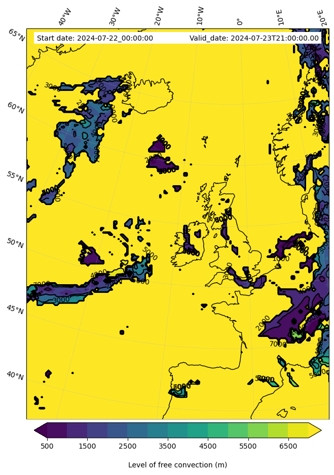 - Level of free convection (m)