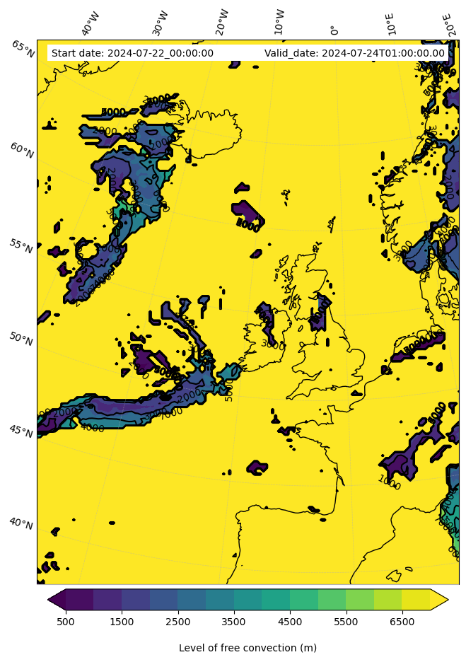 - Level of free convection (m)