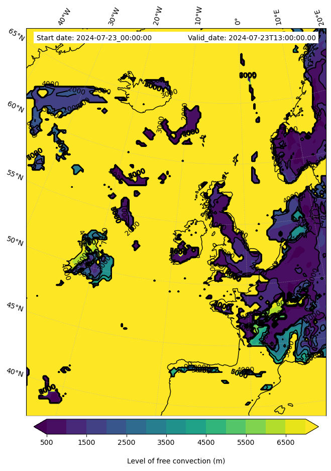 - Level of free convection (m)
