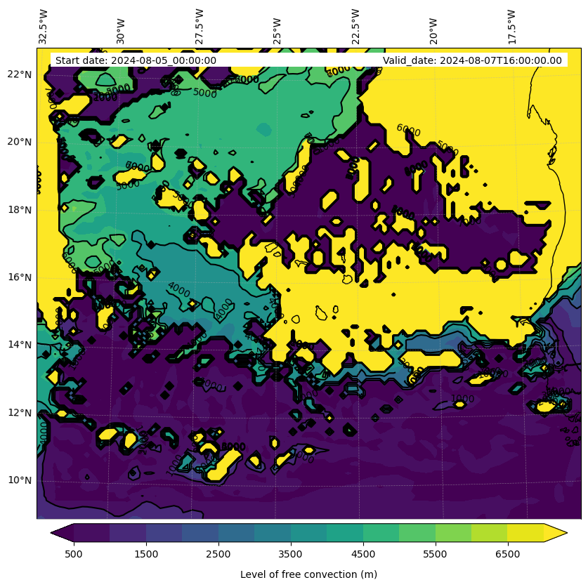 - Level of free convection (m)
