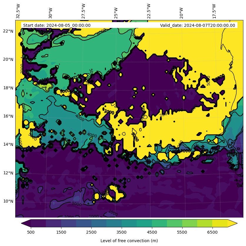- Level of free convection (m)