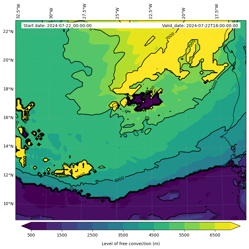 - Level of free convection (m)