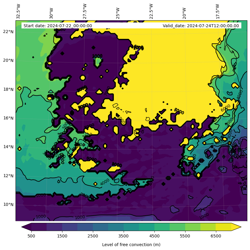 • Level of free convection (m)
