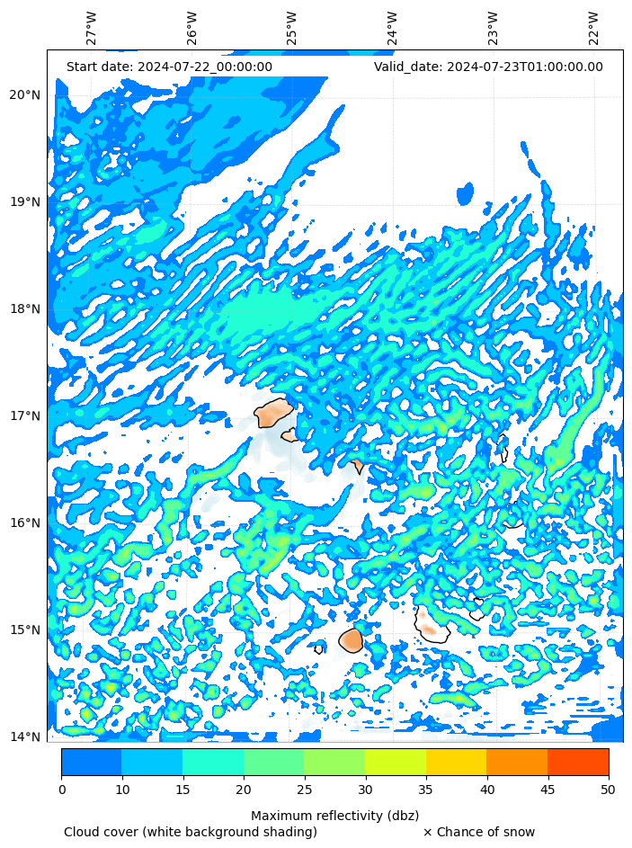 - Snow mixing ratio (g kg¯¹)