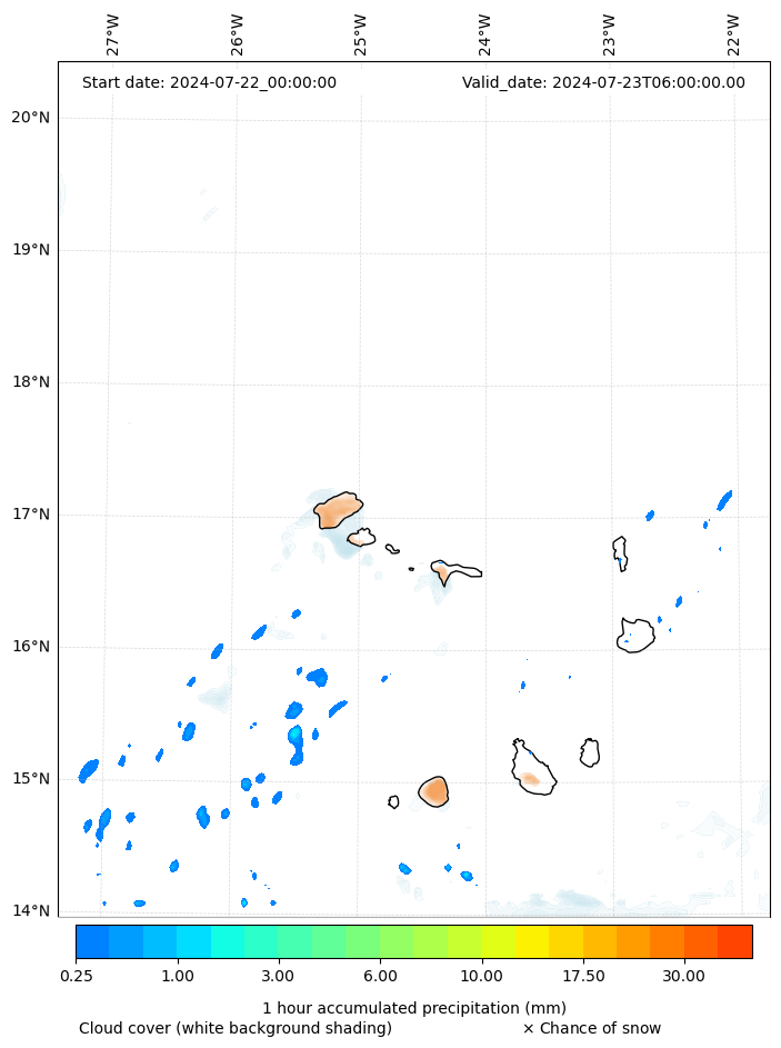 - Snow mixing ratio (g kg¯¹)