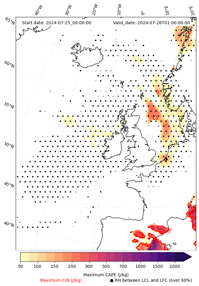 - Maximum CAPE (J/Kg)