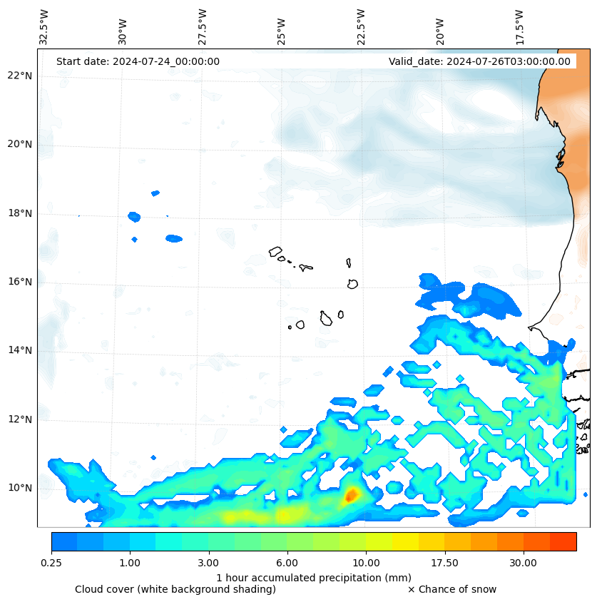 - Snow mixing ratio (g kg¯¹)