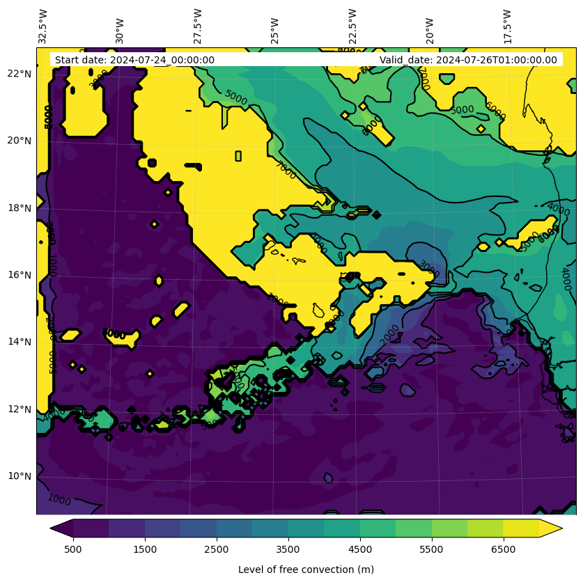 - Level of free convection (m)