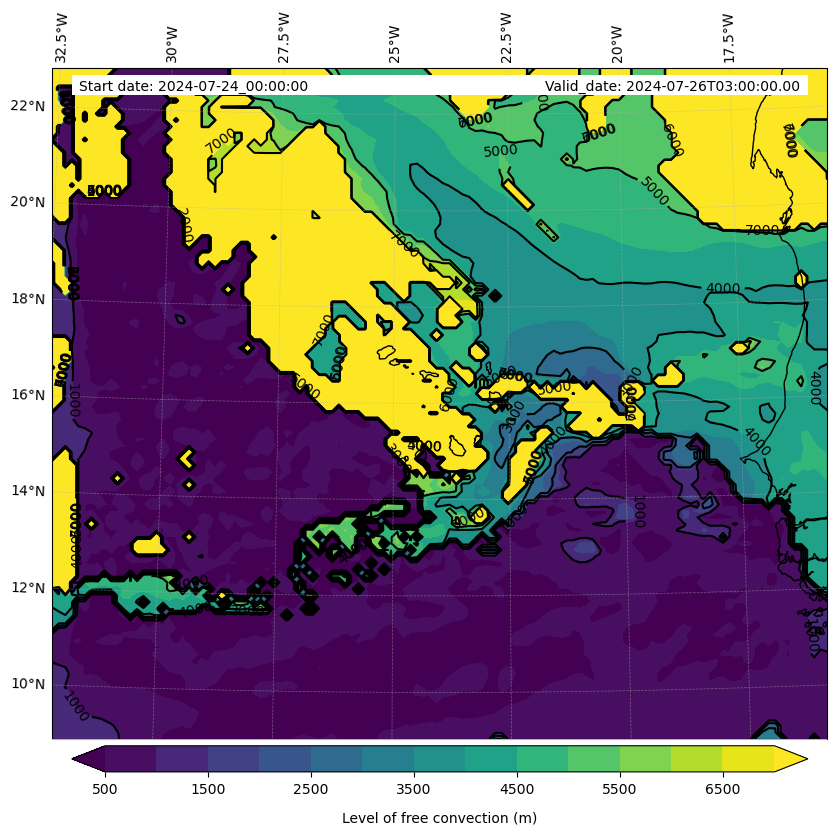 - Level of free convection (m)