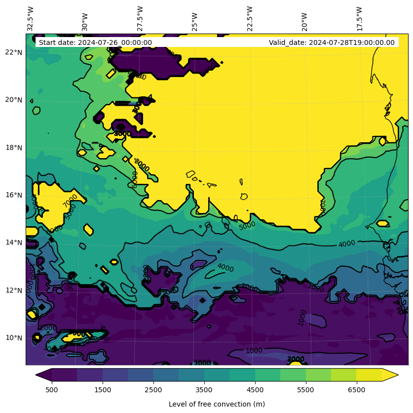 - Level of free convection (m)