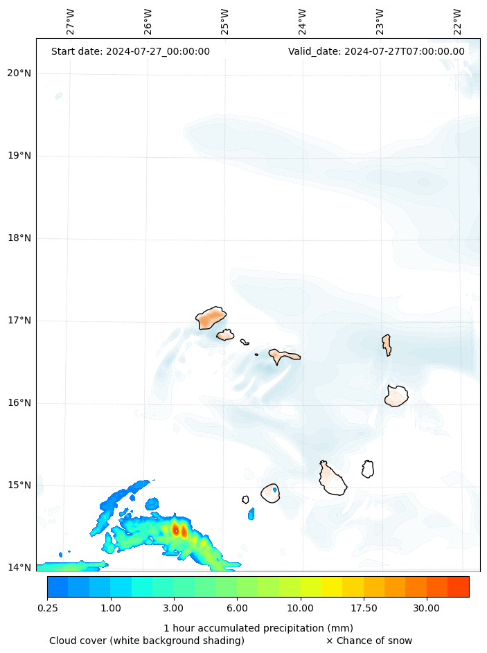 - Snow mixing ratio (g kg¯¹)