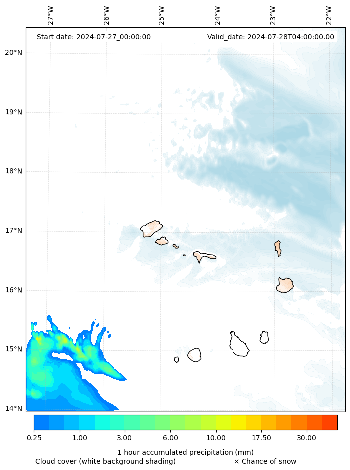 - Snow mixing ratio (g kg¯¹)