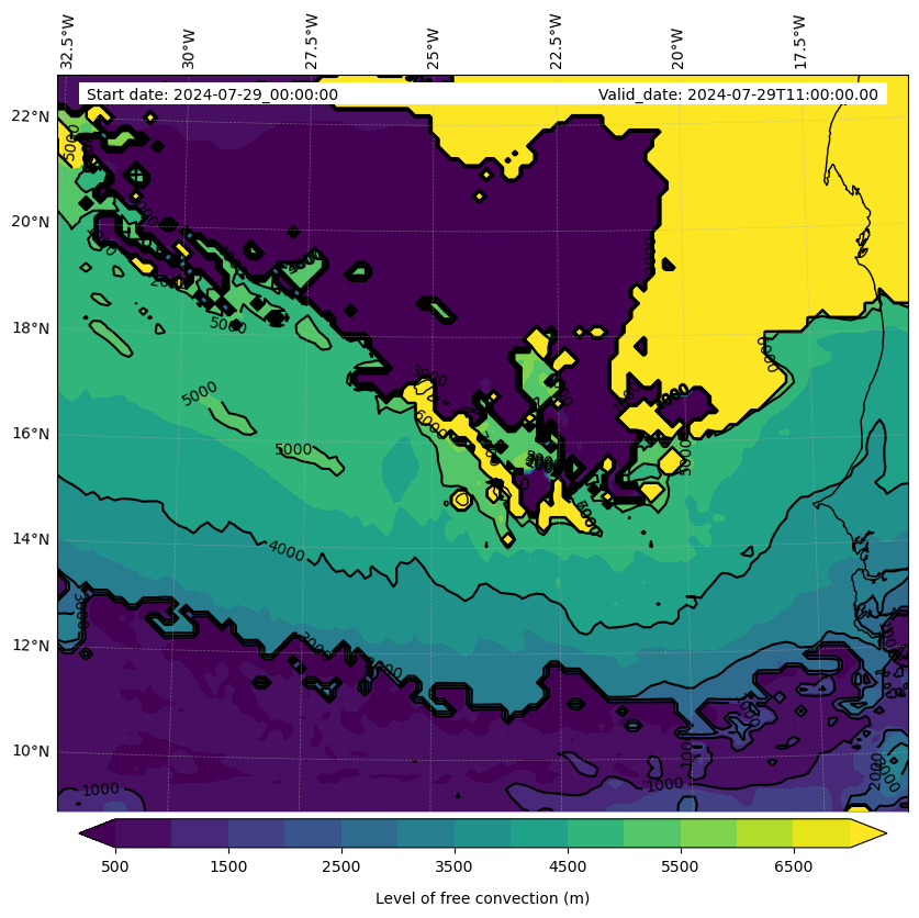 - Level of free convection (m)